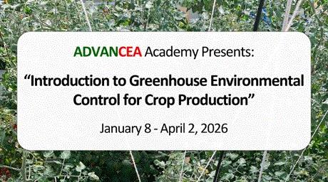 Registration is now open for ADVANCEA Academy’s 2026 online course, Introduction to Greenhouse Environmental Control for Crop Production. This 13-week certificate course runs from January 8 to April 2, 2026, and offers a practical, science-based overview of how greenhouse systems maintain the right balance of light, temperature, humidity and CO₂ for optimal plant growth.